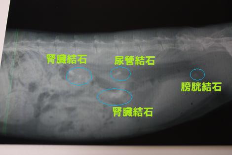 腎臓両方にかなりの量の腎臓結石、膀胱にも結石が・・・。
