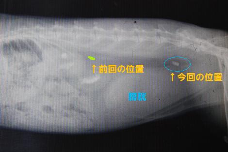 ので撮ってもらうと石は膀胱の手前までは移動してました。