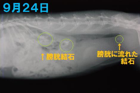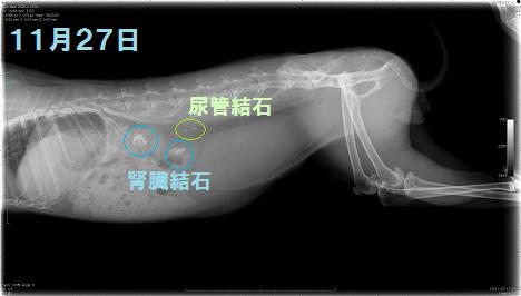 病院でレントゲンを撮った時には腎臓内の結石・膀胱内に流れ出た