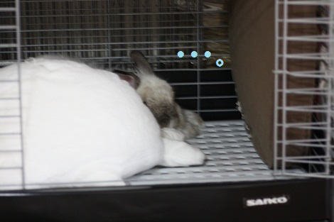 お昼寝の邪魔しないで下しゃい。』まり『あ、今日は逆側で寝てる~。夏は暑かったからかゴマちゃん