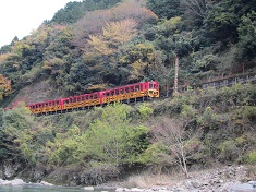 トロッコで亀岡まで行って亀岡からは保津川下りで嵐山に。』